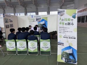 岡山、香川県内から土木・建築系学科2年生の生徒さん約320人、企業は54社が参加した企業説明会となります。ブースを訪れてくれた生徒さんは真剣に耳を傾けて説明を聞いてくださいました。